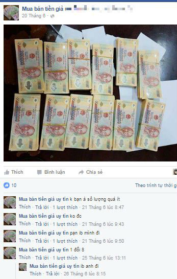 Theo tin tức trên báo Tri thức trực tuyến, sau thời gian ngắn lắng xuống, tình trạng rao bán tiền giả trên mạng có xu hướng quay lại. Chỉ cần gõ từ các khóa như: “mua bán trao đổi tiền...”, “mua bán tiền giả”, trên Facebook sẽ xuất hiện hàng loạt các trang chuyên cung cấp tiền giả với nhiều mệnh giá khác nhau.