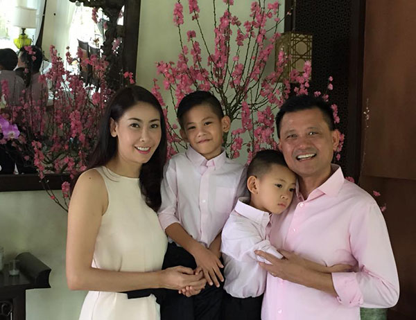 Hoa hậu Hà Kiều Anh rạng rỡ bên ông xã và hai con trai: "Ngày đầu năm, cả nhà xúng xính diện đồ hồng đi chúc Tết". |