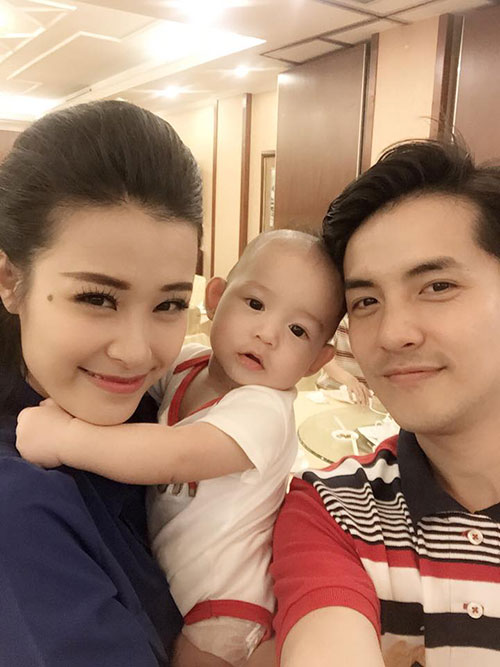 Cặp đôi ca sĩ Đông Nhi - Ông Cao Thắng hào hứng chụp ảnh với cháu trai đáng yêu của nam ca sĩ. |
