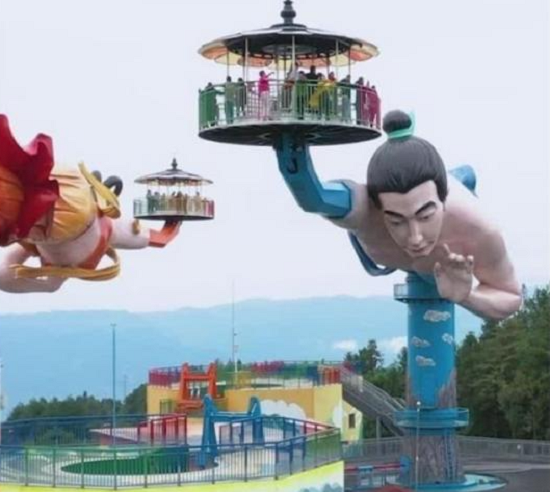 Đứng thứ 3 là hai bức tượng khổng lồ có tên Phi Thiên Chi Vẫn, một thắng cảnh thu hút khách du lịch nổi tiếng ở Trùng Khánh. Hai bức tượng xoay với đài quan sát quay 360 độ trên đỉnh, cho phép du khách ngắm toàn bộ phong cảnh thiên nhiên của Trùng Khánh.