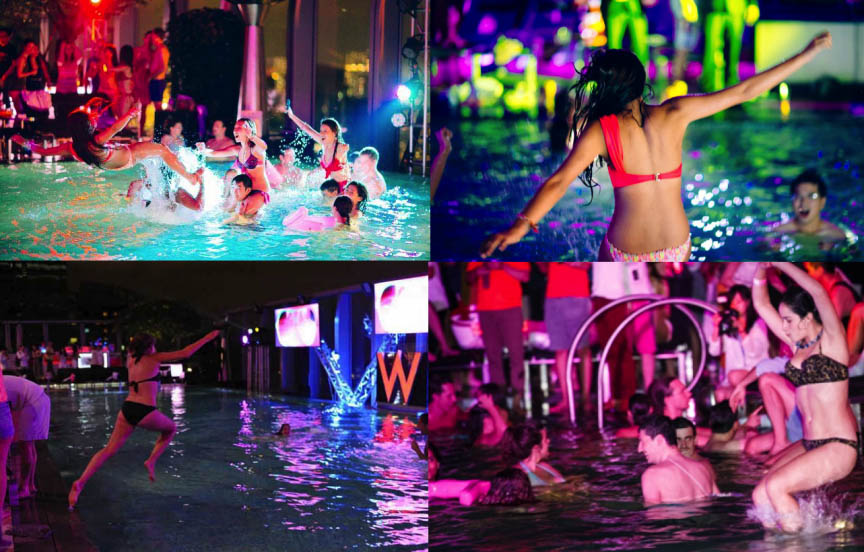 Hồ bơi được trang trí bằng những cây cọ, võng và có rất nhiều vũ công tham dự. Vé vào cửa dao động khoảng từ 300 – 1.000 USD trong đó đã bao gồm một đồ uống miễn phí. Nơi này còn trở nên thú vị và hấp dẫn hơn với phần thưởng là kì nghỉ ở Maldives.