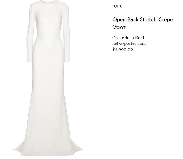 Thiết kế váy cưới maxi hở lưng quyến rũ của hãng Oscar de la Renta có giá xấp xỉ 5.000 USD - Ảnh: Elle |