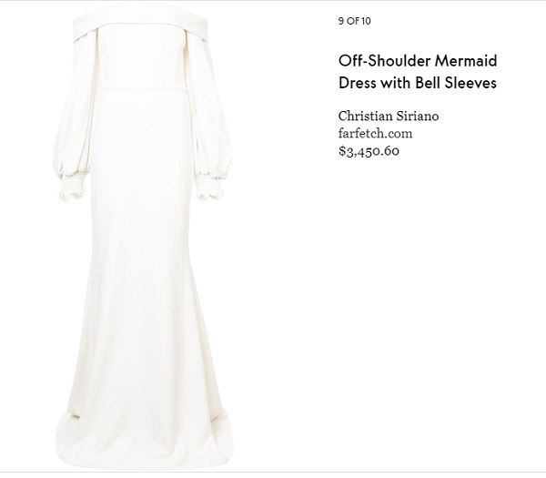 Một mẫu váy phù dâu trễ vai với phần tay bo trẻ trung có thể khiến bạn sẵn sàng chi 3.450 USD để sở hữu - Ảnh: Elle |