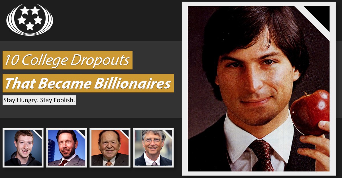 Tuy nhiên, đại học không phải cho tất cả mọi người. Một số người đấu tranh với các môn học, những người khác lại cảm thấy việc đó là lãng phí thời gian. Và vì lý do nào đó, họ đã không học đại học hay bỏ học giữa chừng. Trong khi nhiều người bỏ học đại học và không tìm thấy thành công, có rất ít những người đã trở nên vô cùng thành công trong giới kinh doanh.
