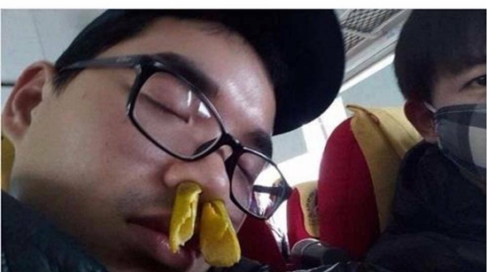Anh chàng này rất sáng tạo, vừa cản mùi, vừa thắt đai an toàn. Xe có lắc, có rung thì anh ấy vẫn ngủ ngon lành. |