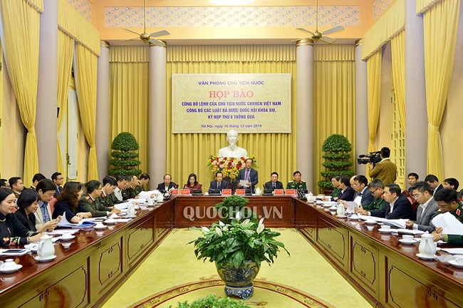 Chiều 16/12/2019, tại Hà Nội, Văn phòng Chủ tịch nước đã tổ chức họp báo công bố lệnh của Chủ tịch nước Cộng hòa xã hội chủ nghĩa Việt Nam công bố 11 Luật đã được Quốc hội khóa XIV, kỳ họp thứ 8 thông qua.