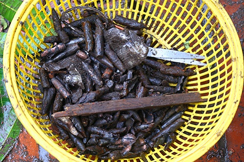 Người dân thôn Quan Độ cầm rổ đi nhặt đạn quanh nhà. Ảnh: Vnexpress. |