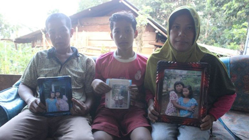 | Gia đình Yuyun và di ảnh cô bé. |