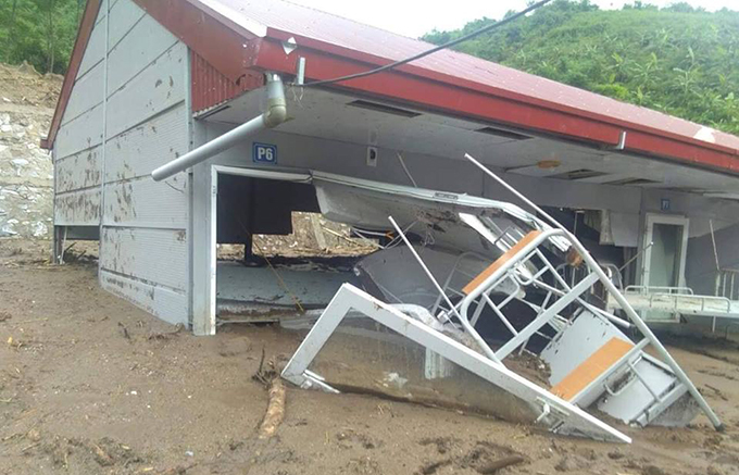 Trường bán trú THCS xã Tam Chung (Mường Lát, Thanh Hóa) bị hư hại do lũ quét. Ảnh: VnExpress |