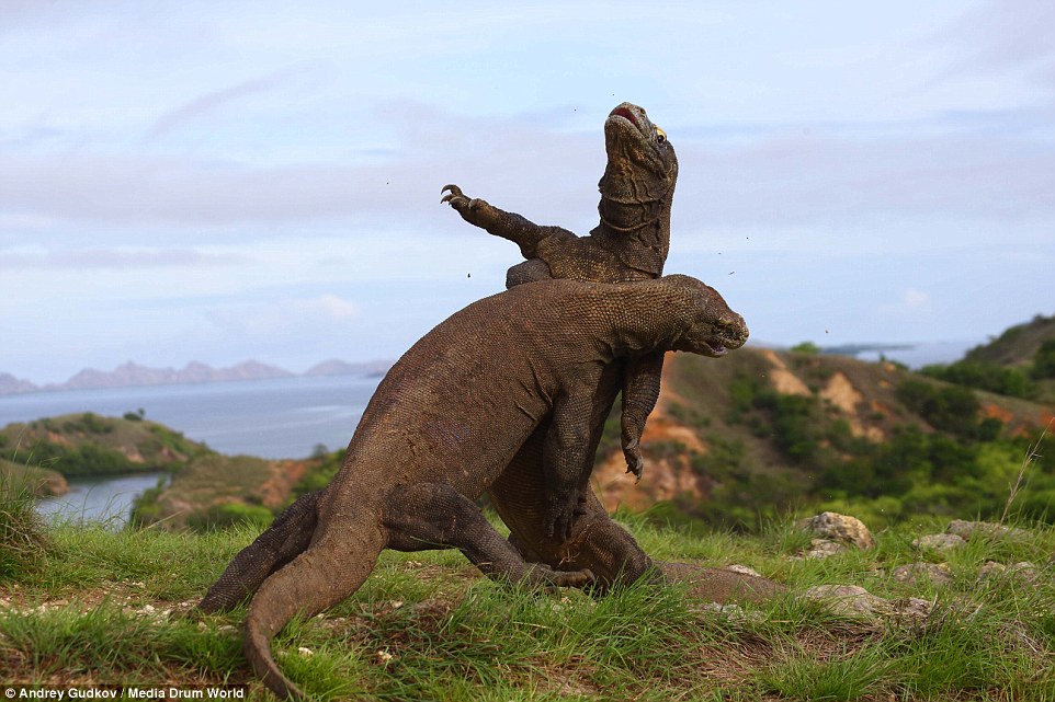 Rồng Komo là loài thằn lằn ăn thịt lớn nhất thế giới, có họ gần với khủng long và sinh sống chủ yếu ở các đảo tại Indonesia. Trận chiến giữa 2 con thằn lằn không lồ này đã diễn ra tại đảo Komodo, Indonesia và được chụp ảnh từ khoảng cách 10 mét. Mặc dù trông giống như một bộ phim Hollywood nhưng các bức ảnh này đều được chụp từ thực tế trong môi trường hoang dã.