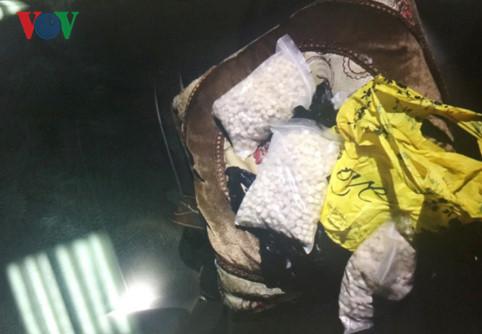 Quá trình kiểm tra, người điều khiển xe bất ngờ tăng tốc bỏ chạy, bỏ lại chiếc gối bên trong có 3 túi nilon chứa khoảng 3.000 viên nén hình trụ màu vàng nhạt, nghi là ma túy tổng hợp.