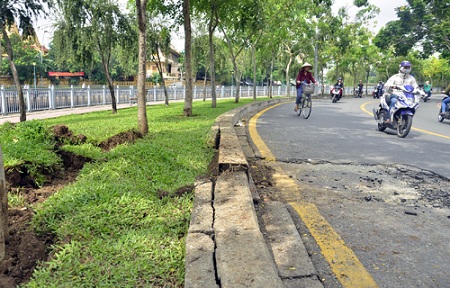 Khi mọi người lại gần kiểm tra thì phát hiện, mặt đường và thảm cỏ xung quanh hố ga bị xới tung, đất đá và bê tông văng tung tóe khắp nơi.