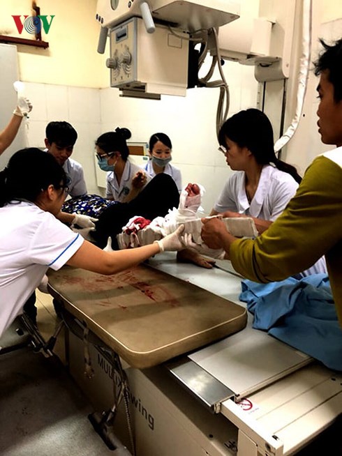 Nạn nhân bị thương được đưa vào bệnh viện cấp cứu. Ảnh: VOV |