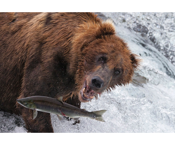 Bức ảnh ghi lại cảnh gấu nâu rình bắt cá hồi ở Alaska. Bức ảnh giành giải trong danh mục "Hệ sinh thái đa dạng" của cuộc thi nhiếp ảnh năm 2017 của Hiệp hội Sinh thái Hoàng gia Anh. Ảnh: Buzzfeed. |