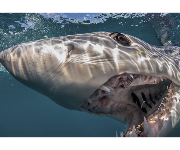 Một con cá mập vây ngắn lao đến xuất hiện trước ống kính máy ảnh trong vùng biển ngoài khơi New Zealand. Đây cũng là 1 trong những bức ảnh của năm trên tạp chí National Geographic. Ảnh: Buzzfeed.