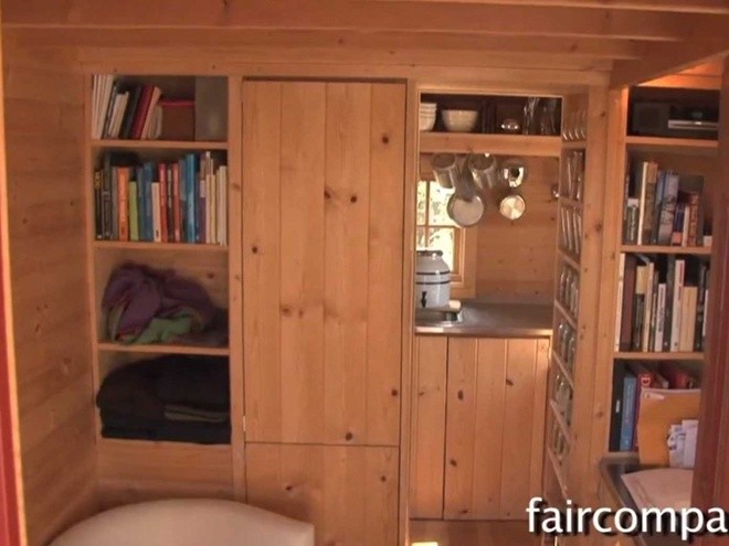 | Căn nhà 8 m2 ở bang California, Mỹ Jay Shafer là nhà sáng lập của công ty Tumbleweed Tiny House, chuyên thi công những ngôi nhà nhỏ có kích thước dao động từ 6 đến 80 m2. Ngôi nhà của bản thân Shafer cũng chỉ rộng 8 m2 với một “khu giải trí”, một phòng bếp và đầy đủ hệ thống ống nước, vòi hoa sen, nhà vệ sinh, giường ngủ cùng những giá kệ trên khắp các bức tường. |