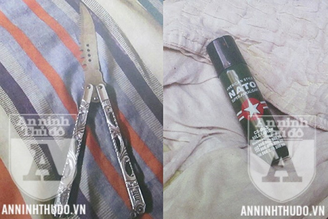 Dao nhọn và bình xịt hơi cay được lực lượng công an thu giữ. Ảnh: ANTĐ |