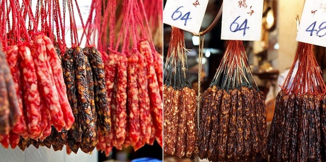 | Laap Cheung (Lạp xưởng): Ai tới Hong Kong mà chưa thưởng thức lạp xưởng thì thật uổng phí. Món ăn nổi tiếng này được hun khói, cho thêm đường và gia vị trước khi được thái lát và thưởng thức. |