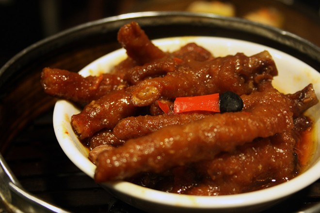 | Feng Zhao (Chân gà): Những chiếc chân gà giòn dai rưới một loại nước tương đặc biệt rất hợp để ăn vào những ngày mát trời. |