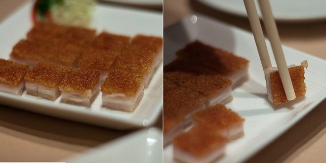 | Siu Yuk (Lợn quay): Thịt lợn quay được thái vuông và chấm với nước sốt chua ngọt lạ miệng và rất dễ ăn. Vị ngọt của thịt nạc hòa quyện với vị bùi của lớp mỡ và phần bì giòn tan khiến Siu Yuk được nhiều người yêu thích. |