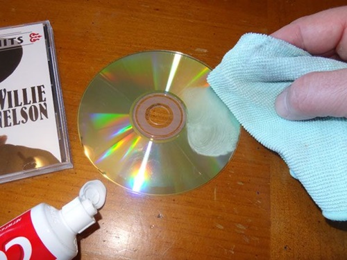 Bạn không thể thưởng thức bài hát yêu thích của mình nếu chiếc đĩa CD bị trầy xước. Mách bạn mẹo vặt là chỉ cần chà kem đánh răng lên vết trầy xước, dùng khăn sạch lau đi rồi cho đĩa vào máy và nghe lại một lần nữa thử xem.