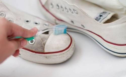 Sử dụng kem đánh răng để làm sạch giày dép sẽ khiến chúng vừa sạch, lại có mùi tươi mát.