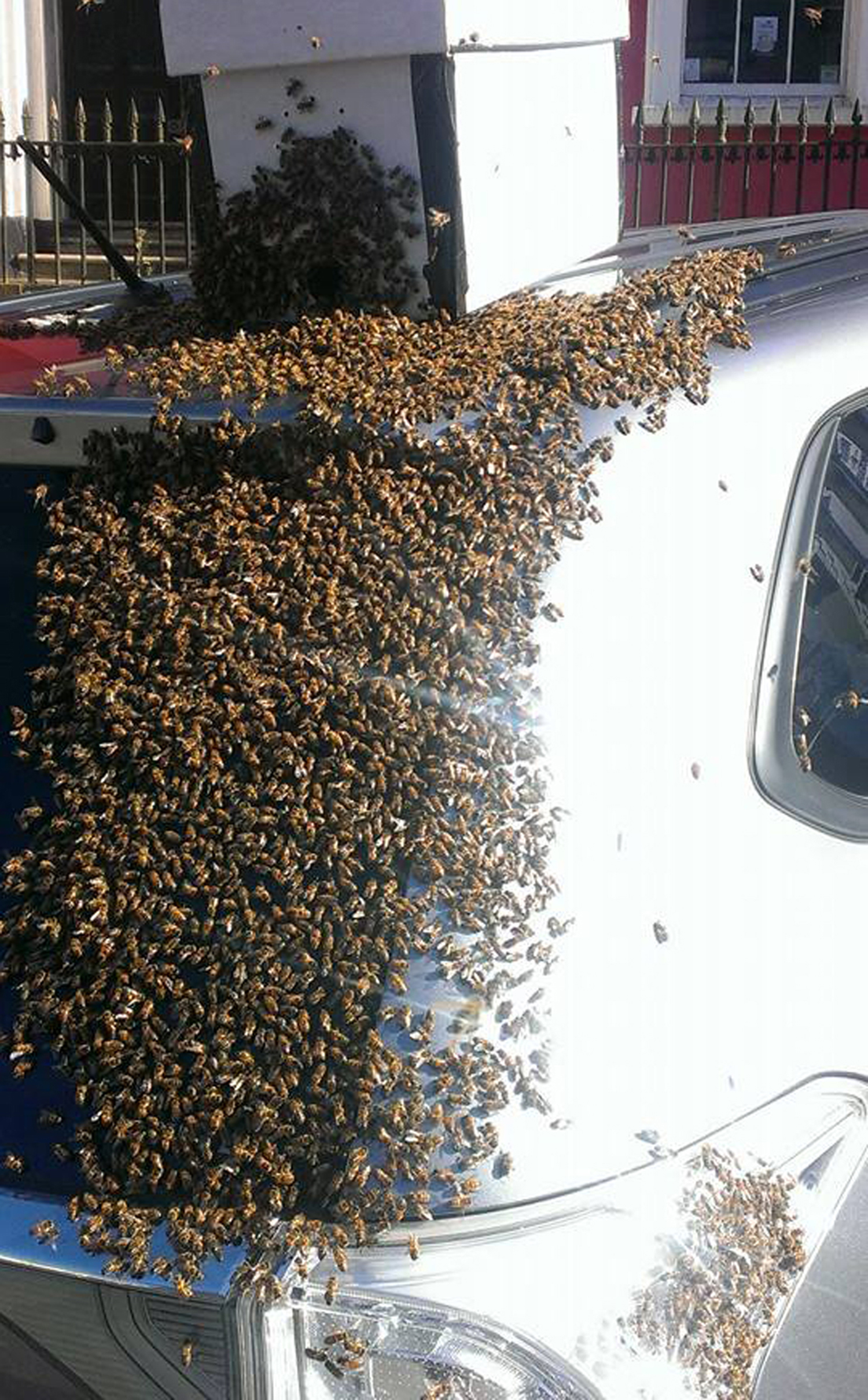 Carol Howarth, 65 tu?i, ch? nh�n c?a chi?c xe Mitsubishi Outlander b? ?�n ong v�y b�m trong 28 gi? li?n sau ?� ?� nh? ??n 3 ng??i nu�i ong, m?t b?o v? c�ng vi�n v� m?t s? ng??i qua ???ng ph?i h?p s?c ?? gi?i t�n nh?ng con ong b�m quanh xe. Chi?c xe g?n nh? ?� bi?n th�nh m?t t? ong di ??ng khi b? ?�n ong �qu?y r?i�. �