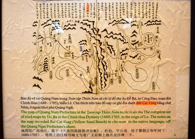 | Địa danh Bãi Cát Vàng được ghi trong Bản đồ Quảng Nam tam phủ cửu huyện thuộc tập “Giao châu dư địa chí”. |
