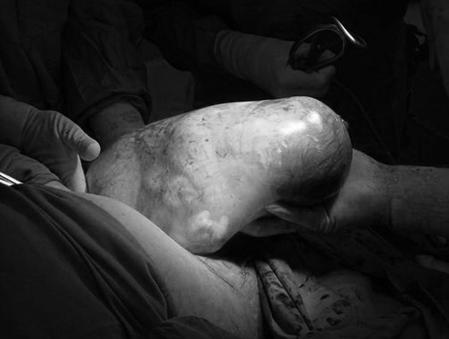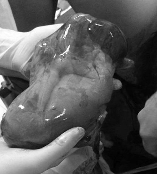 Thông thường trong quá trình chuyển dạ hoặc mổ đẻ, ối sẽ vỡ ra thì em bé mới chui ra được nhưng với trường hợp này, do túi ối căng phồng như bong bóng nên em bé khó có thể chui ra nguyên vẹn qua âm đạo hay vết mổ chỉ dài 10 cm.