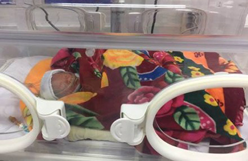 Sau ca sinh, sức khỏe người mẹ đã phục hồi khá tốt nhưng em bé vẫn được chăm sóc và nằm trong lồng ấp thở máy NCPAP. May mắn là sức khỏe của bé cũng tiến triển tốt.