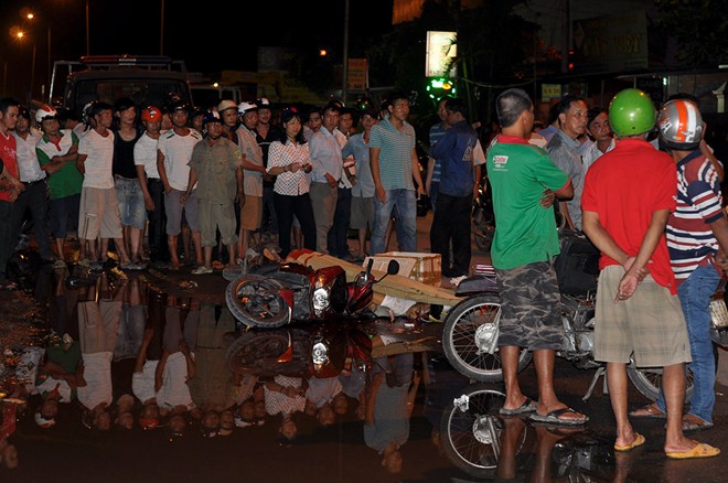 Ngã xuống đường khi tránh vũng nước, vợ chồng ông H. cùng con trai 2 tuổi bị xe container từ phía sau lao tới cán tử vong.