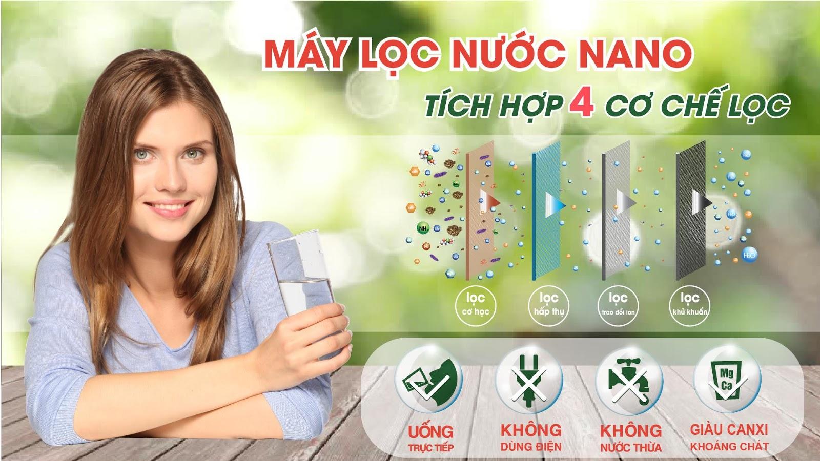 Máy lọc nước nano tích hợp 4 cơ chế lọc trong 1 lõi lọc |
