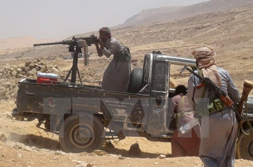 Binh sỹ Yemen giao tranh với phiến quân Houthi tại tỉnh miền trung Marib ngày 28/9. Ảnh:Reuters/TTXVN. |