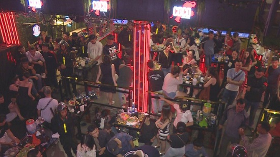Tiến hành kiểm tra, công an thu giữ nhiều tang vật là chất túy, bình bơm khí bóng cười, hàng trăm chai rượu ngoại không rõ nguồn gốc. Kiểm tra nhanh, 88 thanh niên nam, nữ tại 3 quán trên dương tính với chất ma túy .