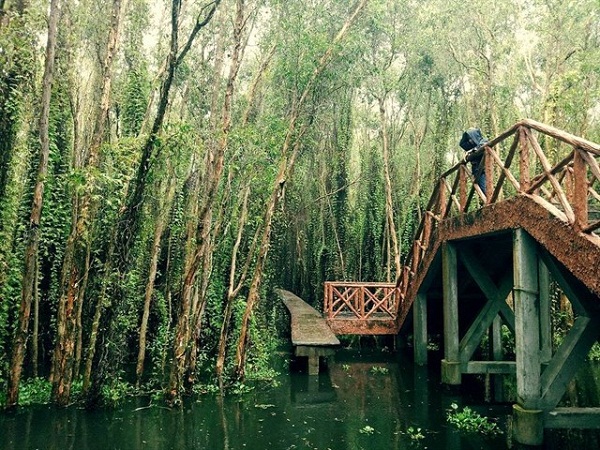 Đến với làng nổi Tân Lập, bạn sẽ tìm được cảm giác bình yên với khung cảnh thiên nhiên trong lành của rừng tràm xanh ngắt, thả bộ trên con đường xuyên rừng độc đáo, ngồi trên thuyền tham những cánh rừng bạt ngàn và thưởng thức nhiều món ngon dân dã đậm hương vị miền Tây.