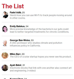 | Danh sách 35 nhà phát minh trẻ xuất sắc nhất trên trang MIT Technology Review. |