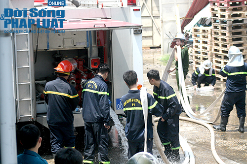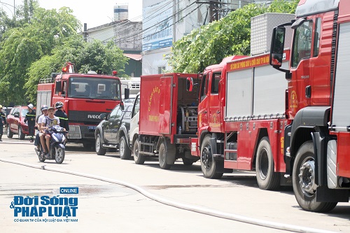 Hàng chục chiến sĩ cứu hỏa được điều động đến hiện trường khống chế vụ cháy. công an phường cũng có mặt hỗ trợ điều tiết giao thông, giữ gìn an ninh trật tự tại khu vực xảy ra cháy. |