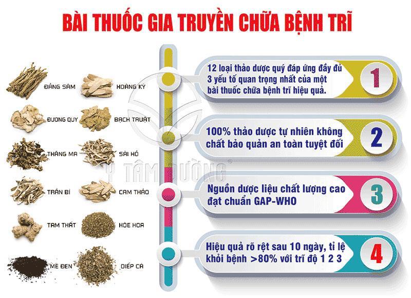 Bài thuốc này gồm 12 vị thảo dược quý đáp ứng đầy đủ 3 tiêu chí quan trọng nhất của một bài thuốc đông y chữa bệnh trĩ là:
