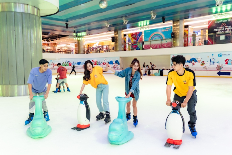 Chẳng có gì khó để trải nghiệm một buổi hẹn hò “như mơ” trên sân băng lãng mạn giống trong phim Hàn Quốc ngay tại thành phố quanh năm nóng. Sân trượt băng Vincom Ice Rink tại tầng B1 tòa tháp Landmark 81 chính là địa điểm hẹn hò được yêu thích nhất trong hè này. Là sân băng lớn nhất Việt Nam với sàn băng thật dày tới 100mm, sân băng này mang đến không gian mát lạnh và lãng mạn không khác gì tại nước ngoài, nơi các cặp đôi tận hưởng những phút giây tập trượt băng đáng yêu, gần gũi trong âm nhạc du dương.