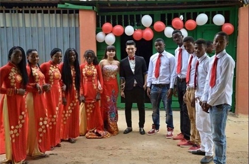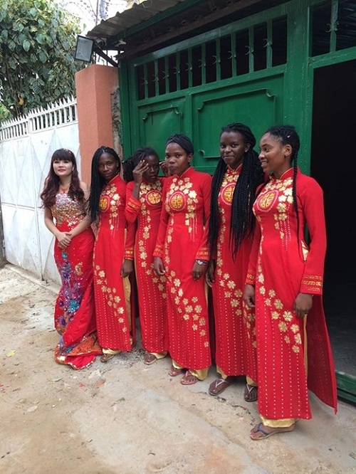 Đội hình bê bê tráp này là những nam thanh nữ tú người gốc Phi. Được biết, cô dâu chú rể là một cặp đôi định cư và làm việc tại Angola. Vì muốn tạo dấu ấn đặc biệt trong đám cưới của mình nên cặp đôi đã quyết định nhờ các thanh niên địa phương bê tráp trong lễ ăn hỏi của mình, dù nơi họ sinh sống có khá nhiều người Việt.