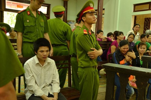 Vợ con bị cáo khóc nức nở tại toà trong lúc toà nghị án (Ảnh: Thanh niên). |