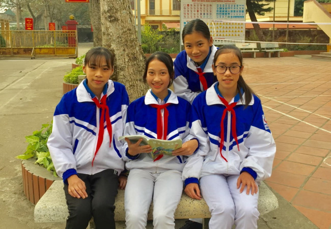 Từ trái qua phải: các em học sinh Phạm Ngọc Anh, Nguyễn Thị Hải Yến, Nguyễn Bảo Ngọc và Hà Ngọc Anh. Học sinh lớp 7A- Trường THCS Hồng Thái Sơn Dương, Tuyên Quang. |