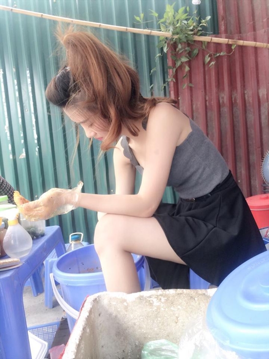 Xuất hiện trong một số clip hát rong đường phố của “Thánh bàn chải”, hình ảnh nhỏ nhắn, xinh xắn của hot girl bán trà đá cũng thu hút sự chú ý của nhiều người.
