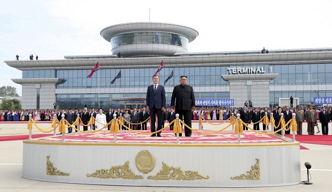 Cuộc gặp hôm 18/9 giữa Tổng thống Hàn Quốc Moon Jae-in và nhà lãnh đạo Triều Tiên Kim Jong-un là lần thứ ba họ gặp nhau trong năm nay, nhưng là lần đầu tiên ông Moon đến Bình Nhưỡng .
