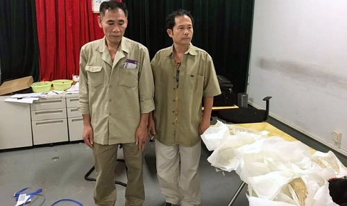 Trước khi nhập cảnh về nước, mỗi người quấn 3 bọc chứa vàng quanh bụng, dán bằng keo rồi mặc áo bên ngoài. Khi đi qua cửa soi chiếu an ninh, họ bị cơ quan chức năng phát giác.