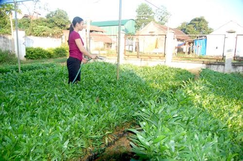 Cán bộ BQL Rùng phòng hộ Anh Sơn chăm sóc vườn ươm cây giống. |
