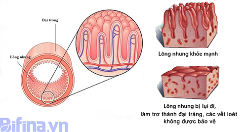 Khi lợi khuẩn Bifido bị chết đi thì lớp lông nhung trong đại tràng cũng trơ trụi đi, làm mất lớp lá chắn bảo vệ nên người bệnh viêm đại tràng cứ trong vòng luẩn quẩn, tái đi tái lại.
