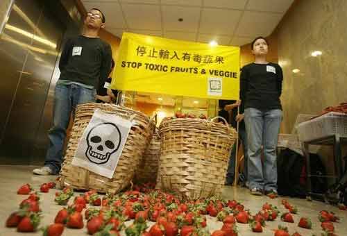 Bã thuốc trừ sâu vẫn còn trong trái cây, rau, và thực phẩm chế biến khi đưa đến nhà cung cấp thực phẩm đã từ lâu là một vấn nạn. Trung Quốc là nhà sản xuất thuốc trừ sâu lớn nhất thế giới và thất bại trên diện rộng trong việc xác định những bã hoá chất trái phép hoặc nguy hiểm có trong thực phẩm. Bằng chứng là nước này có những mức giới hạn bã hoá chất rất hào phóng.