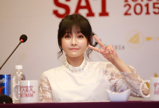 (ĐSPL) - Xuất hiện trong buổi họp báo, 6 cô gái của nhóm nhạc nổi tiếng Hàn Quốc (Boram, Qri, So Yeon, Eun Jung, Hyomin, Ji Yeon) rất xinh đẹp và còn nói được cả tiếng Việt một cách dễ thương.