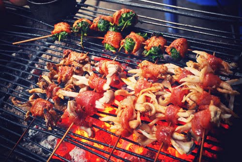 | Những xiên đồ nướng đủ màu sắc tỏa hương thơm hấp dẫn là điều đầu tiên mà du khách nghĩ đến khi du lịch Sapa. Dường như ở Sapa bất kỳ món gì cũng có thể trở thành nguyên liệu của món nướng, từ rau củ, ngô khoai đến trứng, thịt, cá, chim… |